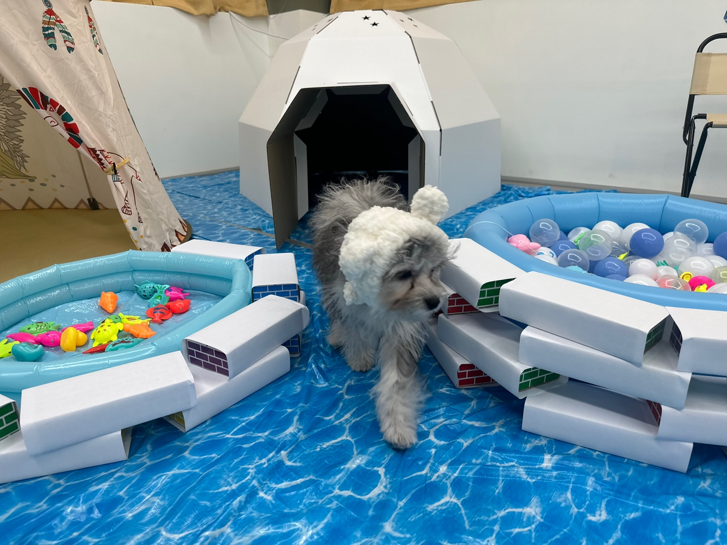 퍼피 유치원은 강아지가 낯선 상황에서 자신감을 갖게 해 줍니다.